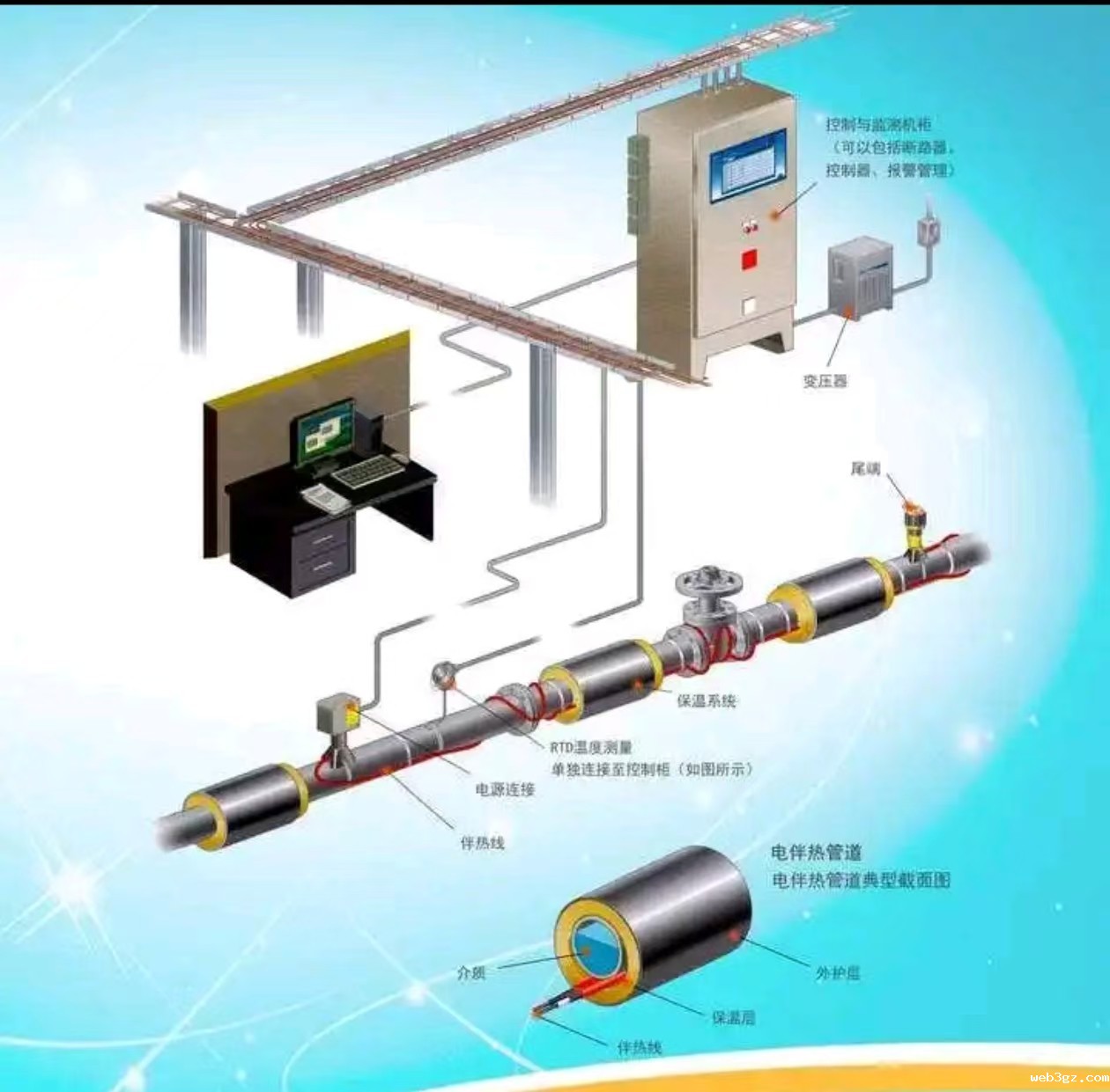 * **高温暴露段:** 如果部分伴热带路径暴露在高温下(如靠近蒸汽管、炉体),该段需选用更高温度等级伴热带或加装**隔热挡板**。