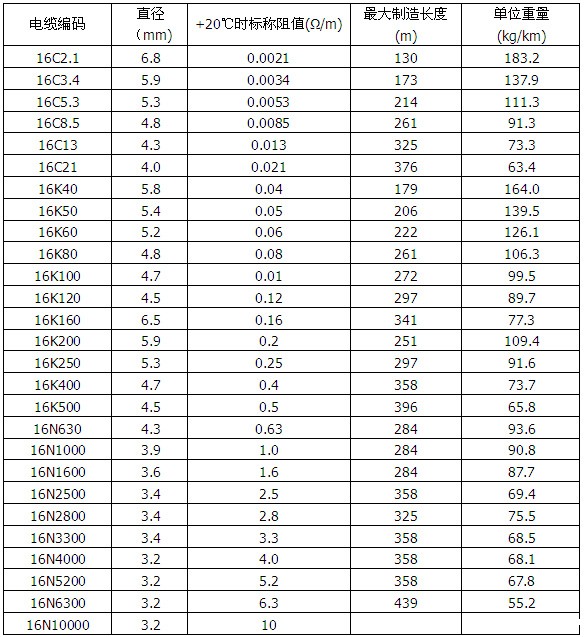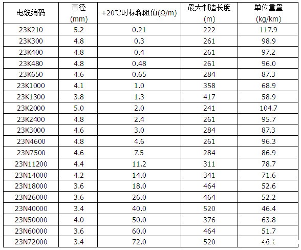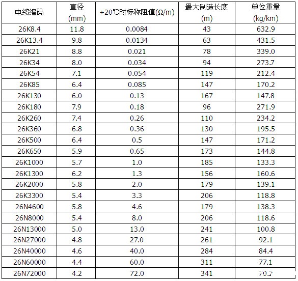 表格1 加热电缆规格(600V 单芯)
